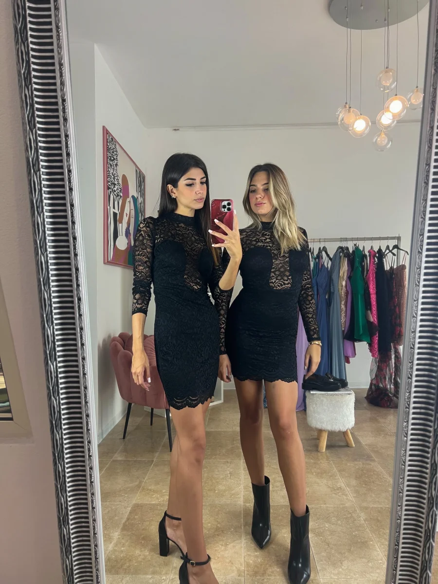 Abito in pizzo con coppe preformate e trasparenze