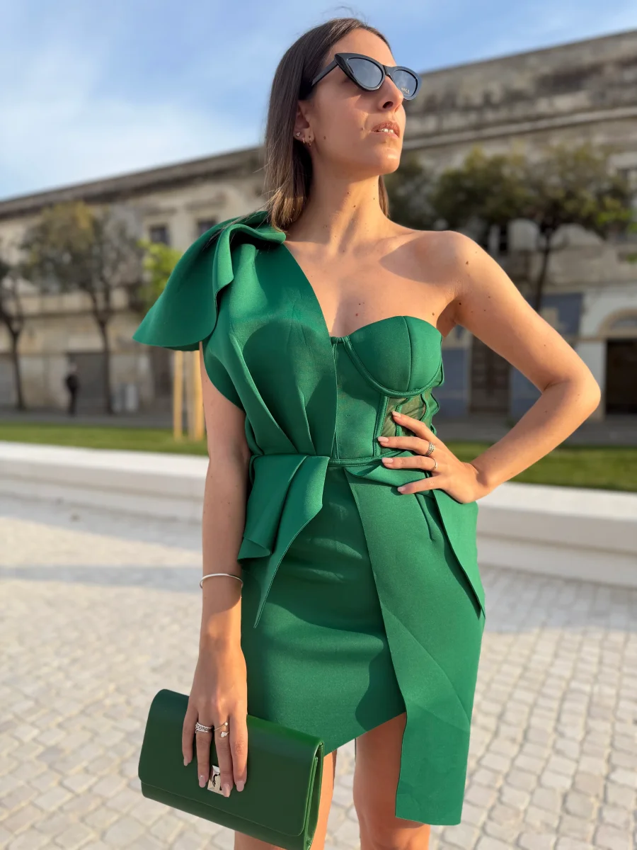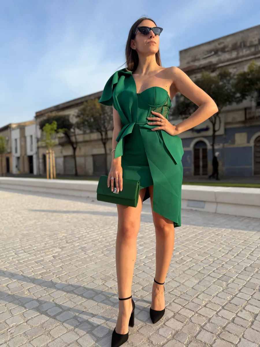 Abito Monospalla Asimmetrico Verde Smeraldo