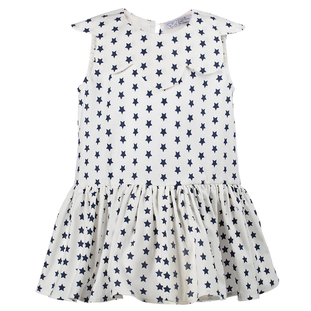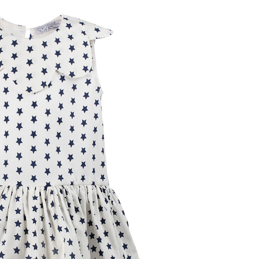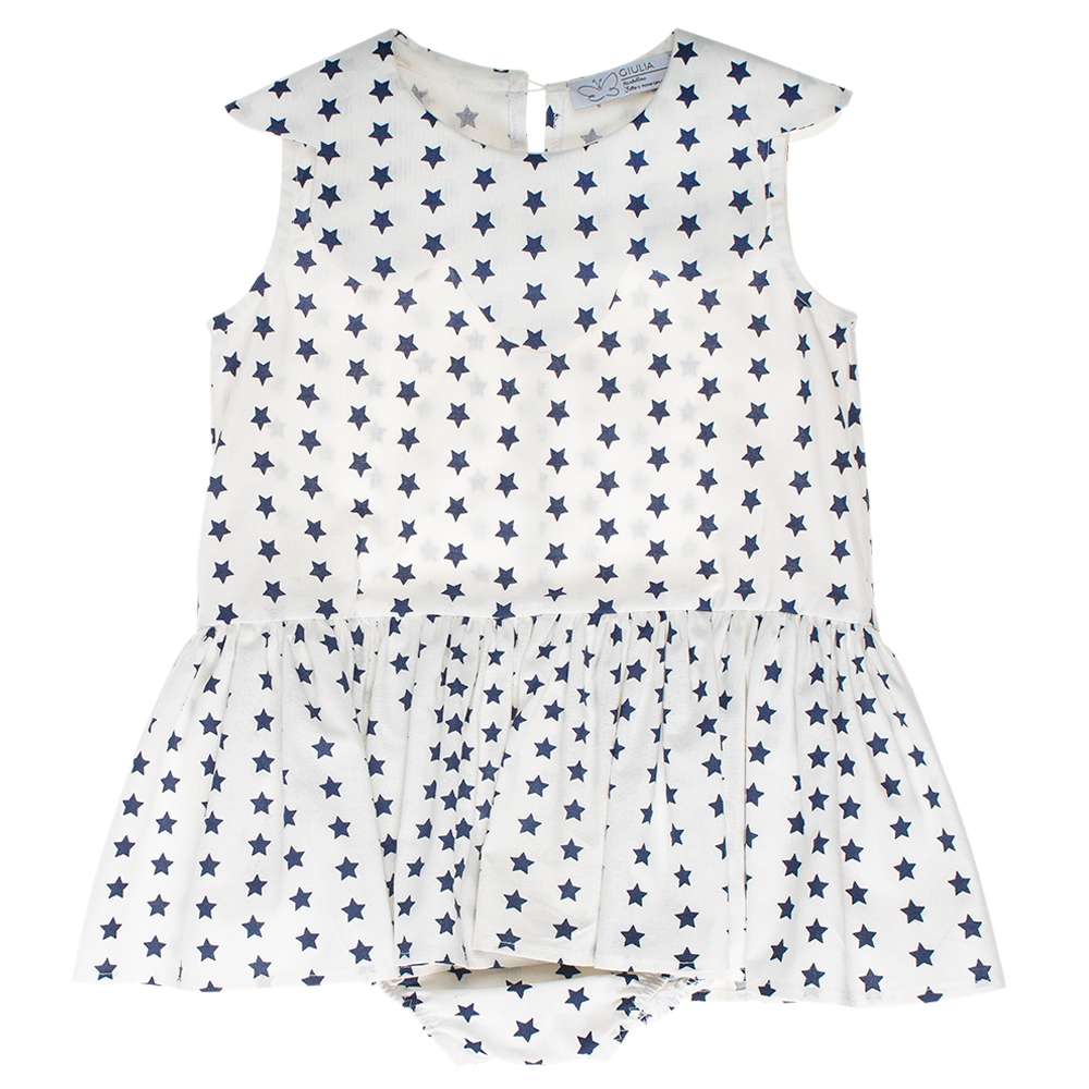 Abito da bambina Aurora a stelle blu in cotone L’Abito da bambina a stelle Aurora in cotone 100%ย รจ un capolavoro di abbigliamento bambina realizzato da sarte italiane, tutto made in italy. E’ un vestito da neonata curato e pregiato, curato in ogni dettaglio e soprattutto stellare, ha il colletto a forma di fiore e sotto la gonna ha il body copri pannolino che si allaccia con automatici, coprendo le grazie della tua bambina, che potrร giocare liberamente senza che il pannolino si sposti o si veda. Abito spensierato e sognatore ideale per feste di compleanno e giornate speciali e…