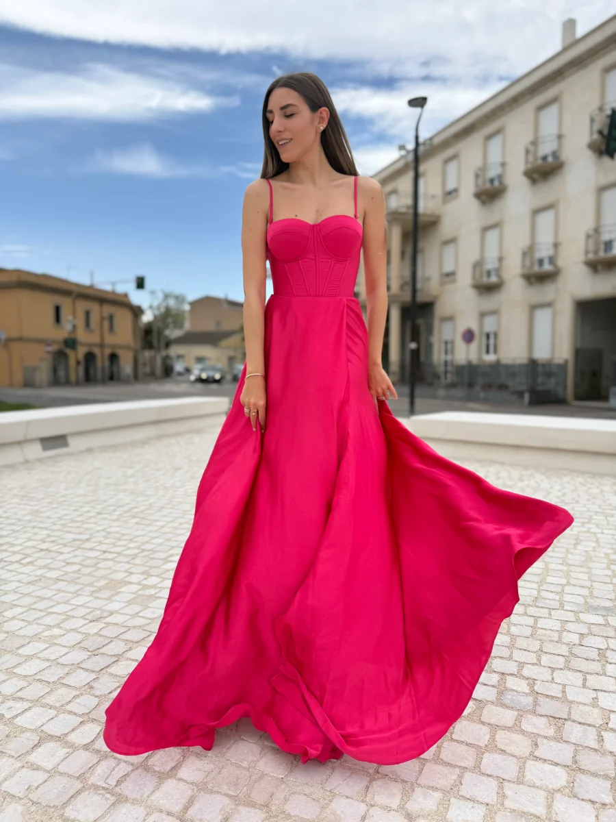 Scopri l’eleganza moderna con questo abito lungo in satin, perfetto per cerimonie, eventi speciali o serate da sogno. Il corpetto stile bustier con coppe strutturate e stecche verticali valorizza la silhouette e dona un tocco sensuale ma raffinato. La chiusura a corsetto sul retro, regolabile con lacci incrociati, assicura una vestibilità perfetta, mentre la zip nascosta aggiunge praticità senza compromettere lo stile.