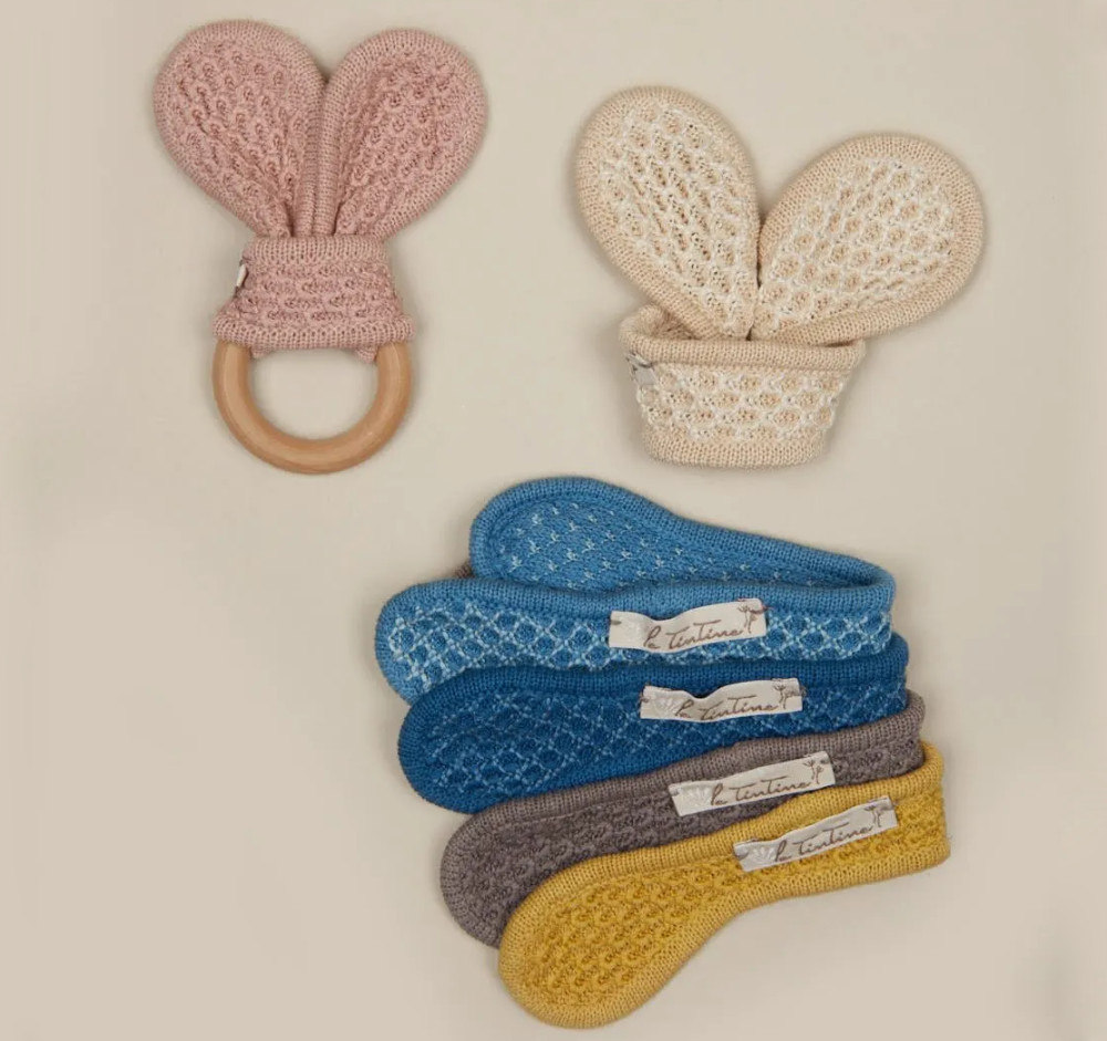 Fiocchetto in cotone organico realizzato con tintura naturale ideale da essere messo in bocca perché completamente privo di sostanze tossiche.