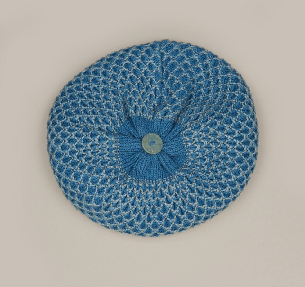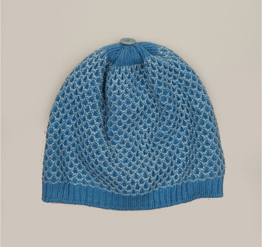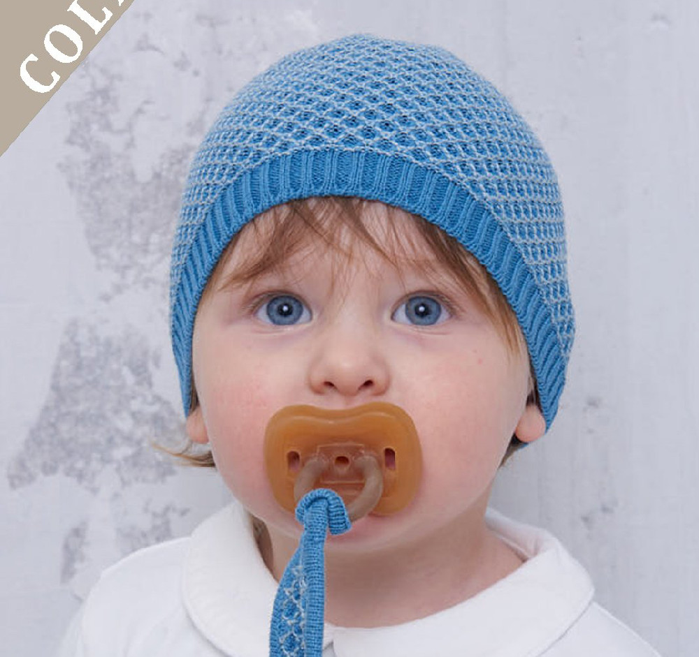 Cappellino per neonato e bambino in cotone organico e seta, tinto di azzurro col processo di tintura al tino con indaco. Berretto realizzato artigianalmente in Italia.