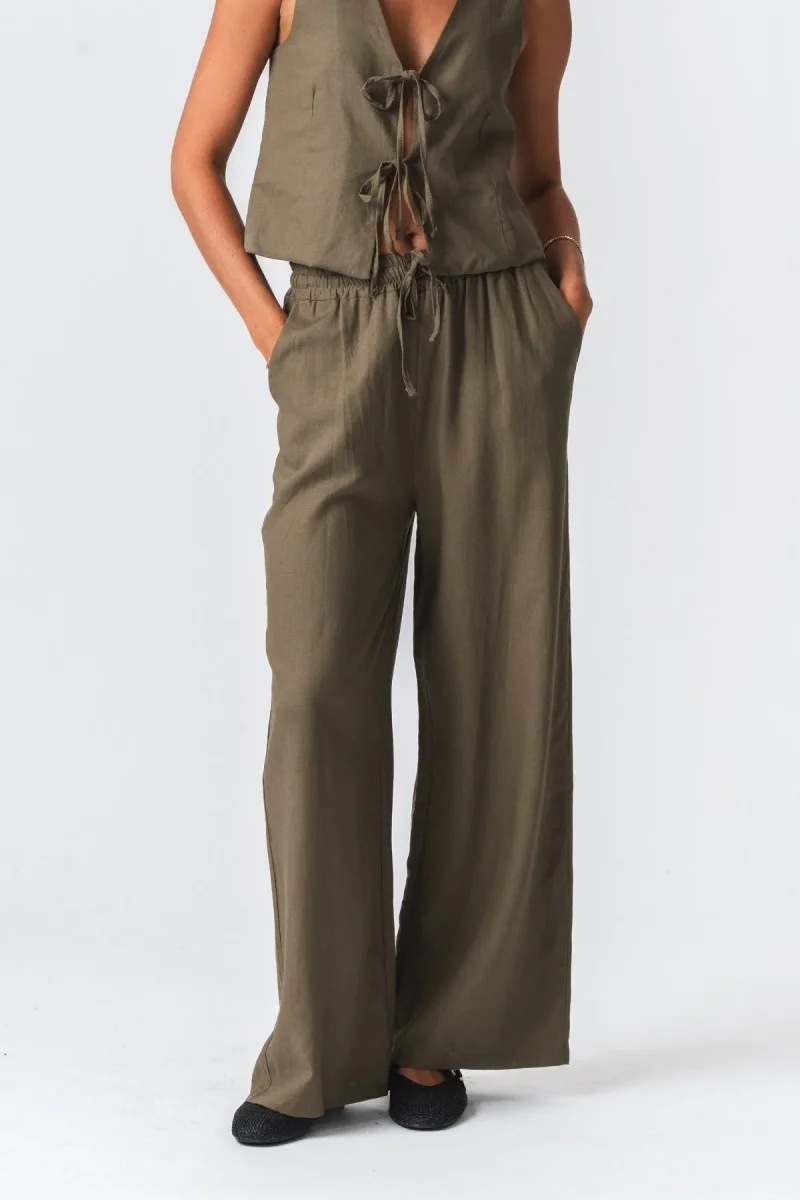 Il nostro lino Pants – Il verde รจ progettato per la donna moderna che apprezza i materiali di alta qualitร e l’estetica raffinata. La finitura naturale della lino accoppiata con una leggera miscela di viscosa fornisce il drappeggio perfetto per la silhouette. Il loro taglio lusinghiero li rende un must per chiunque voglia aggiungere un pezzo versatile al loro guardaroba. Questi pants sono perfetti per una giornata informale o possono essere facilmente vestiti per un’occasione piรน formale. Il sottile colore verde aggiunge una nuova svolta ai tradizionali toni della terra, rendendolo una scelta ideale per coloro che apprezzano dichiarazioni di moda discrete ma audaci.