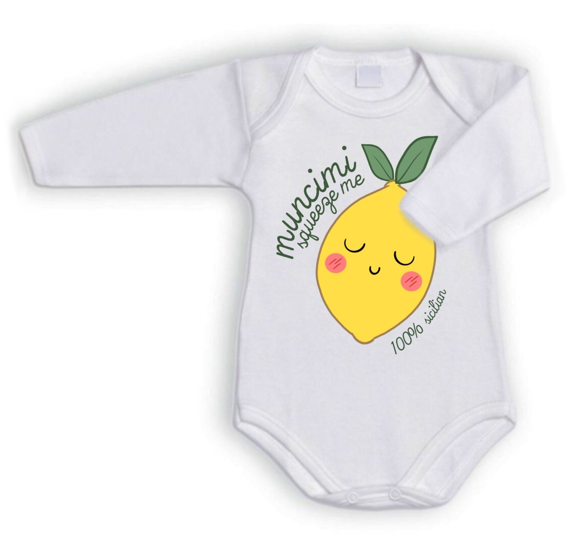 Body bambino in puro cotone 100%, Made in Italy. I body a manica lunga sono in caldo cotone. Guida alle taglie: 3mesi (62cm) – 6mesi (68cm) – 9mesi (74cm) – 12mesi (80cm) – 18mesi (86cm)