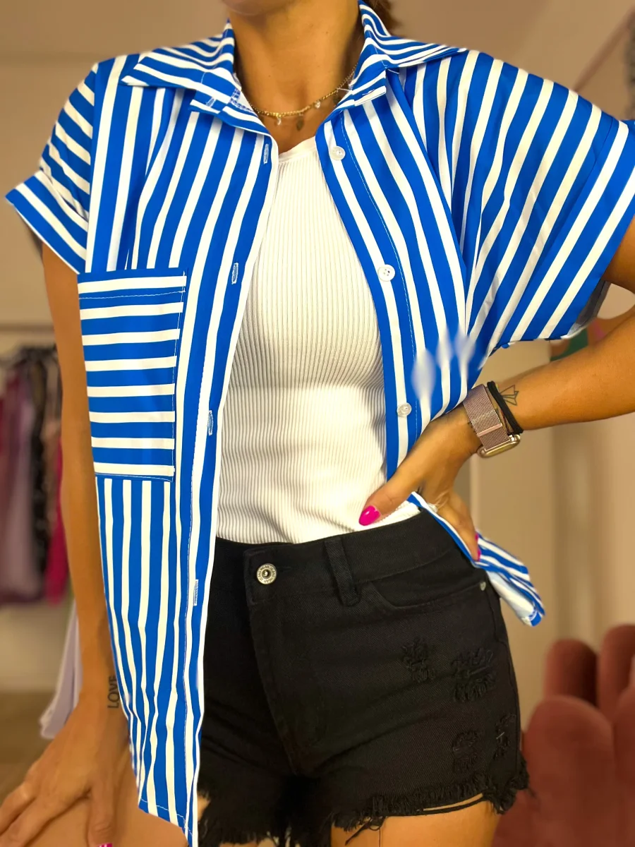 Camicia a righe con taschino frontale. Taglia unica