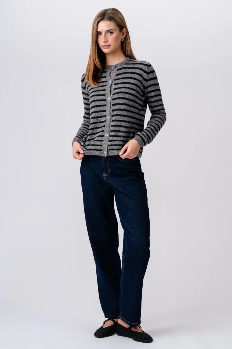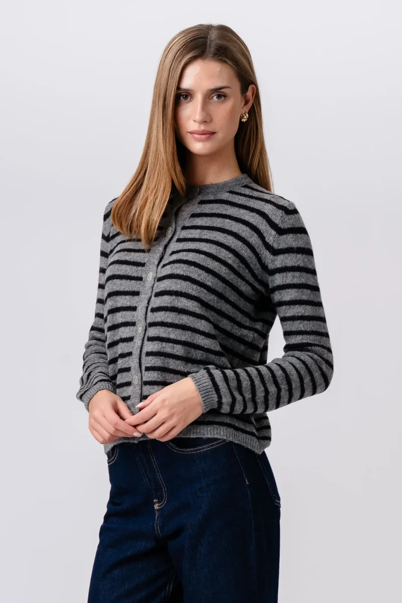 Cardigan in maglia a righe Crizette – Grigio/Nero