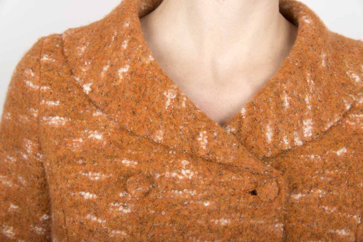 Giubbino da donna in lana cotta a doppio petto, colore arancione maculato bianco. Pezzo unico, taglia 42 Tutte le offerte speciali in un clic! Prodotto artigianale fatto a mano Made in Italy – eccellenza della produzione fiorentina