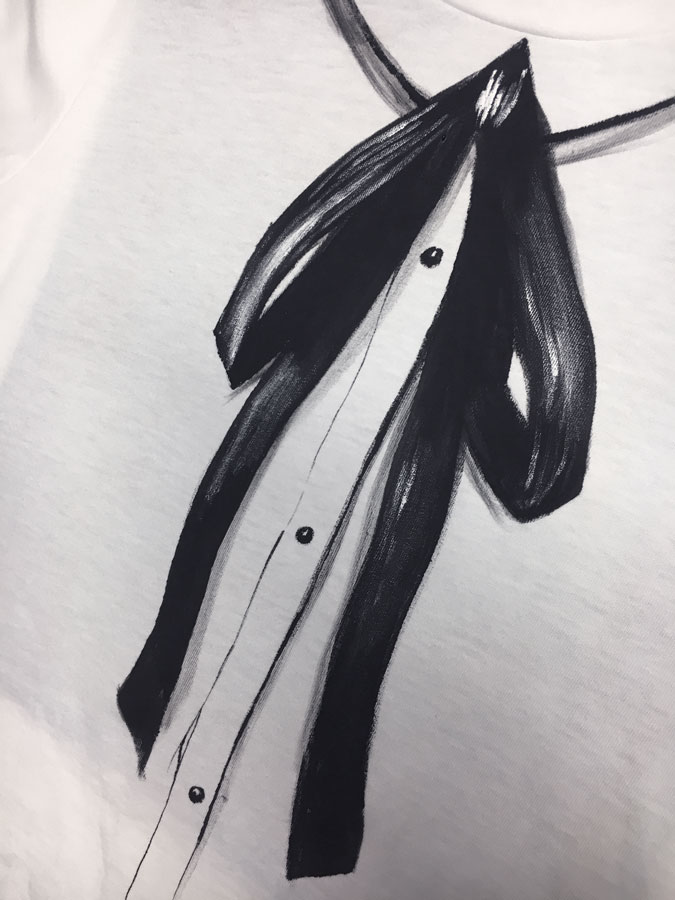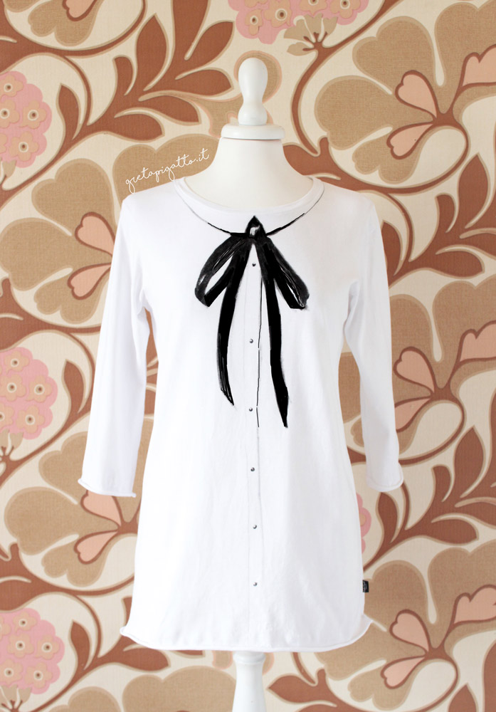 Maglia artigianale camicia con fiocco nero dipinto a mano