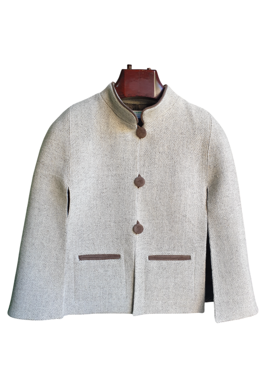 Un capolavoro di tessitura e sartoria. Realizzata con paziente cura, questa mantella è un omaggio alla tradizione tessile fiorentina. La lana, tessuta a mano, conserva tutto il calore e la morbidezza naturale della pecora. Le rifiniture in alcantara marrone e la fodera a contrasto sono un tocco di raffinatezza che esalta la bellezza della materia prima. Un capo unico, che racconta una storia e si tramanda di generazione in generazione. La mantella veste le tglia 42 – 46 ed è un pezzo unico