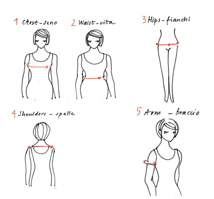 Per essere sicura di scegliere la taglia giusta, controlla le tabelle di riferimento taglie, se non dovessero corrispondere a nessuna taglia, ordina l’opzione “con le tue misure” e scrivimi le tue misure seguendo le indicazioni alla sezione Taglie+Faq.