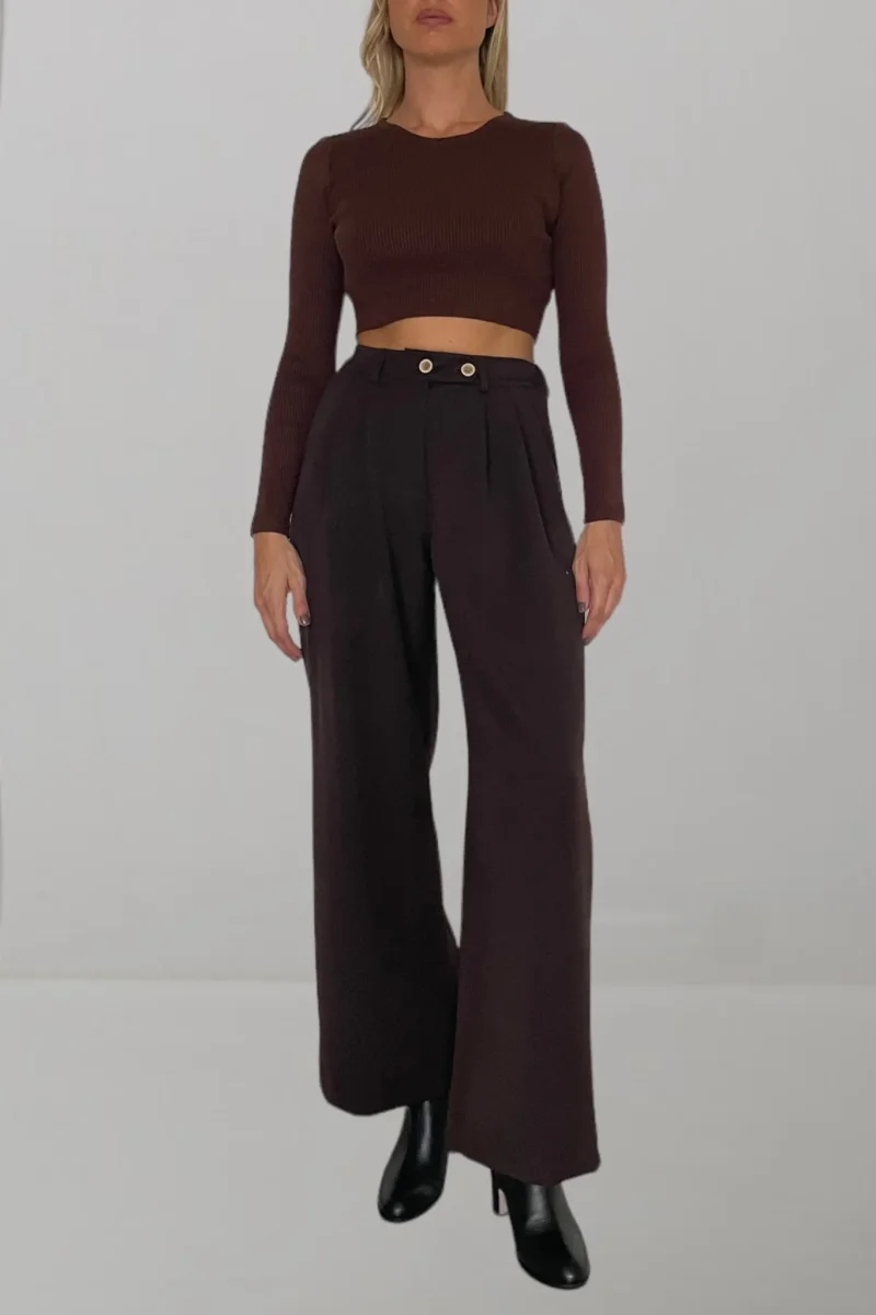 Pantalone wide leg cioccolato con due bottoni