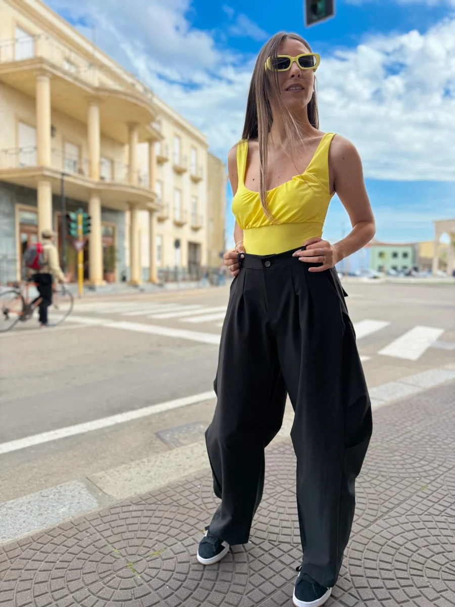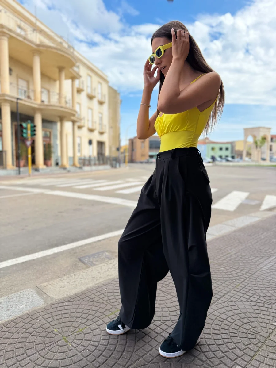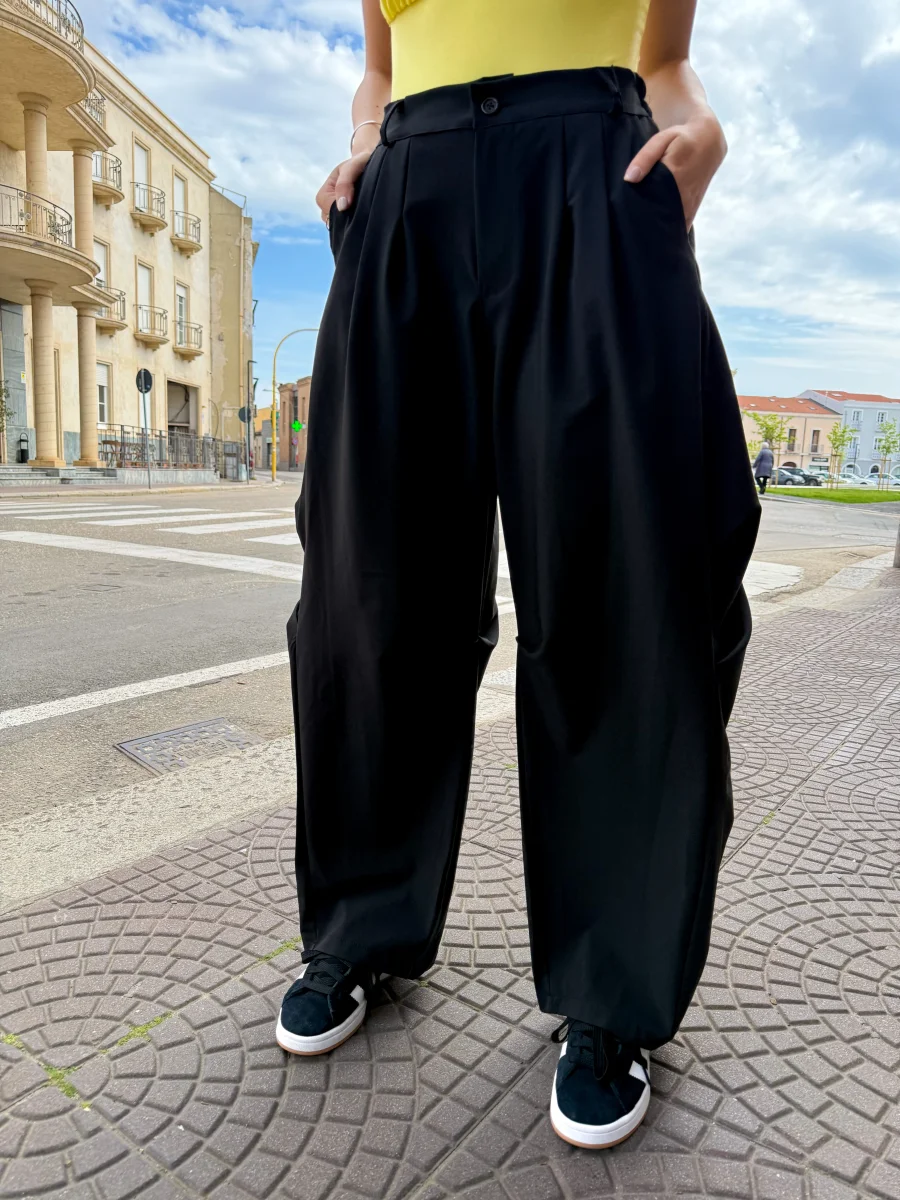 Comfort urbano e stile contemporaneo si incontrano in questi pantaloni wide leg, ideali per un look casual ma super ricercato. Realizzati in tessuto leggero e morbido, sono caratterizzati da un taglio ampio con pinces frontali e maxi tasche laterali in stile utility, per un tocco street davvero cool. Disponibili in nero e beige, si adattano facilmente a qualsiasi abbinamento: dai crop top colorati alle giacche over.