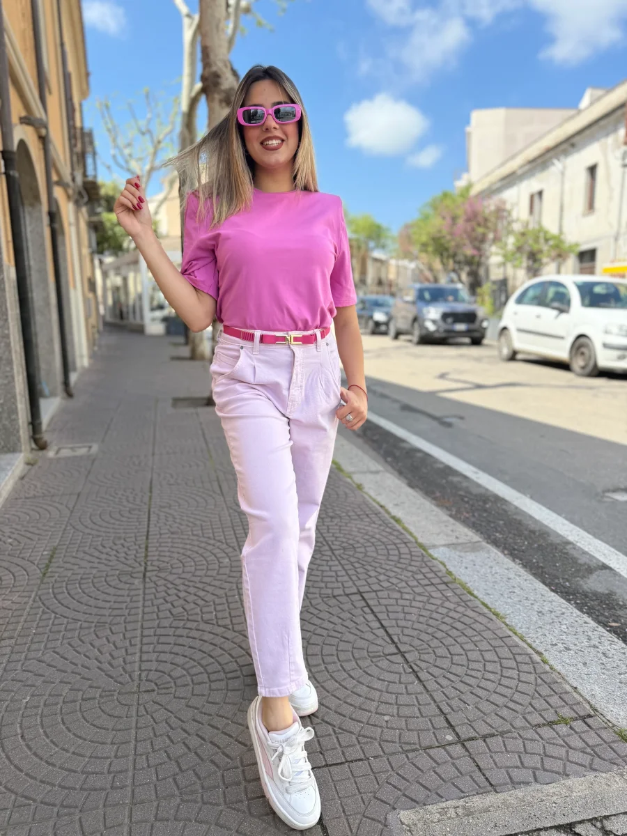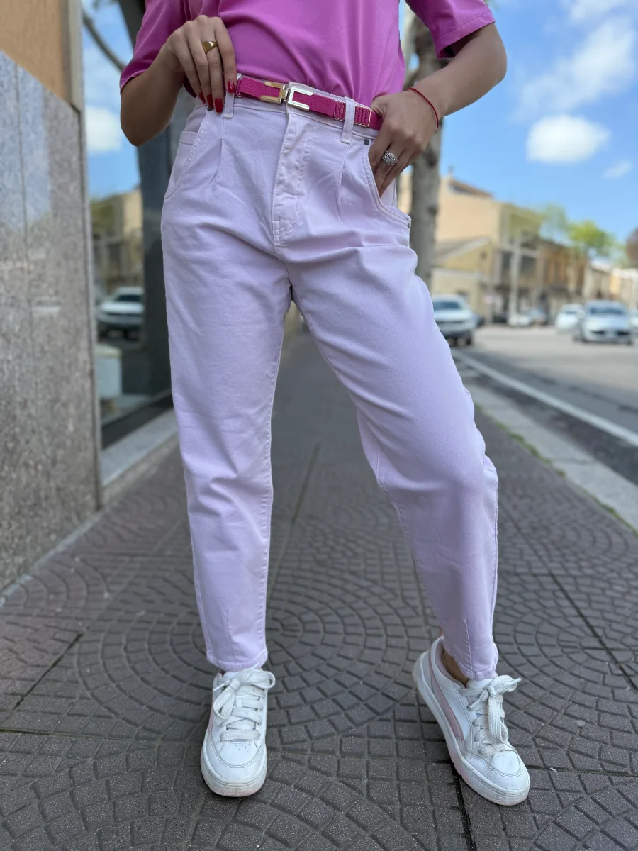 Scopri il comfort e lo stile dei nostri pantaloni Mom Fit in un delicato azzurro chiaro. Realizzati in un tessuto morbido e leggero, offrono una vestibilità comoda con vita alta e gamba leggermente affusolata, perfetta per un look rilassato ma sempre curato.