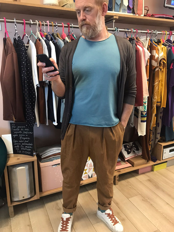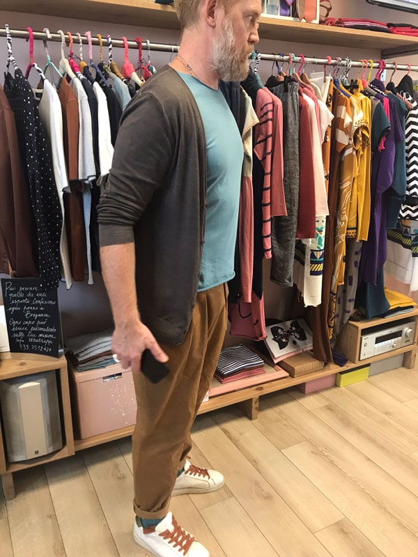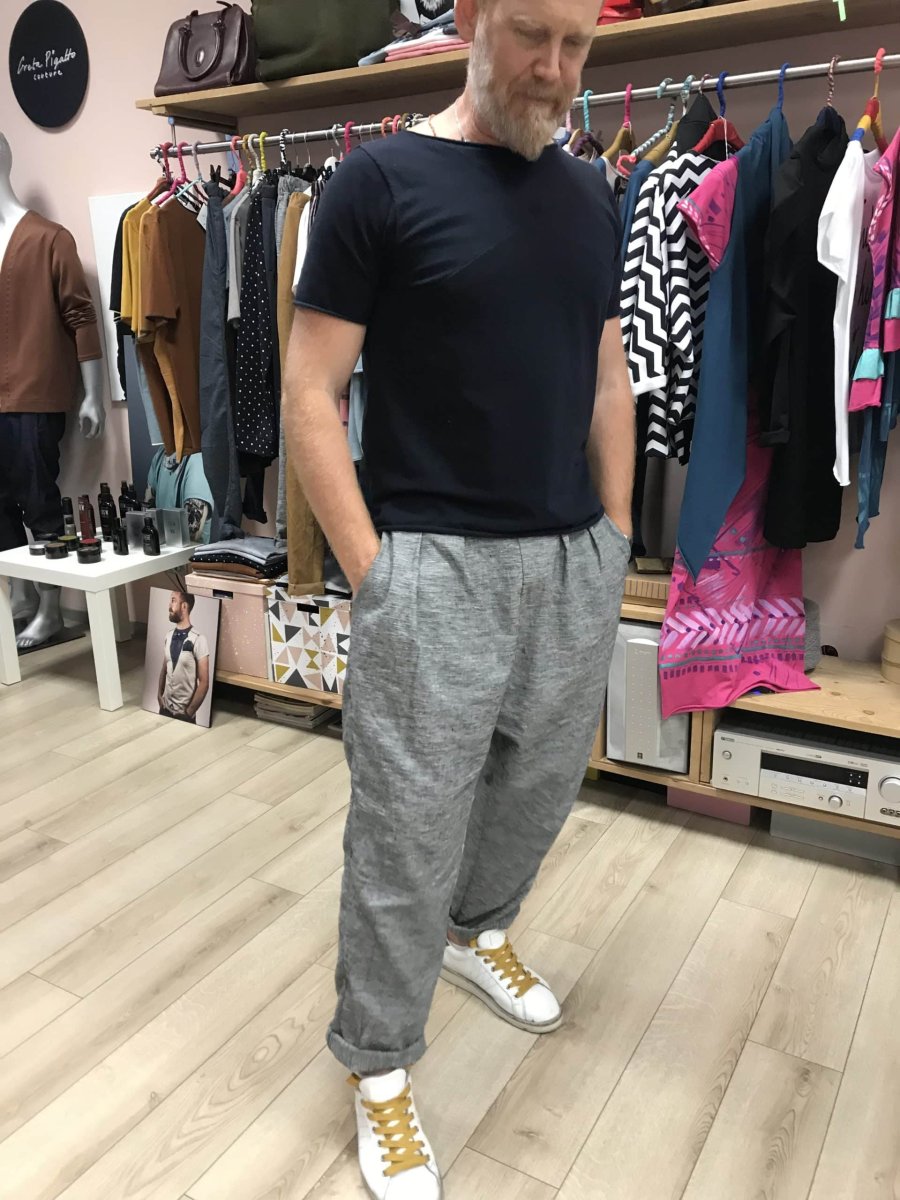 Pantaloni uomo artigianali con elastico in vita e la possibilità di fare il risvolto sul fondo. Tasche sui lati foderate.