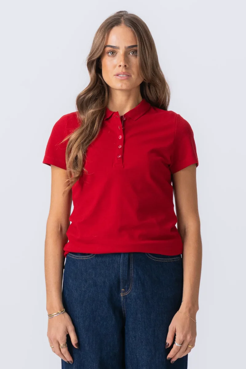 Svelando l’eleganza: TeeShoppenLa polo rossa per le donne