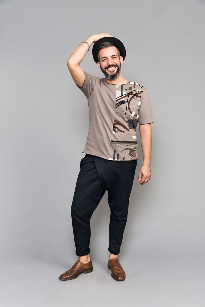 Per avere la vestibilità perfetta su di lui ho lavorato sul cartamodello taglia XL aumentando ancora le spalle e il torace e mantenendo una circonferenza vita taglia L-XL.
