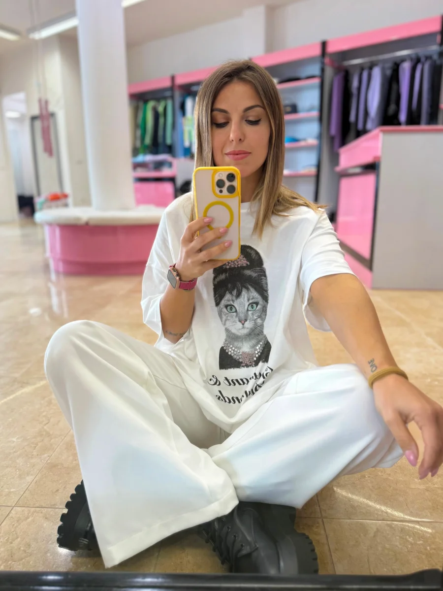 T-shirt con maniche corte e scollo tondo, 100% cotone Presenta stampa sul fronte.Vestibilità oversize. Disponibile in taglia UNICA