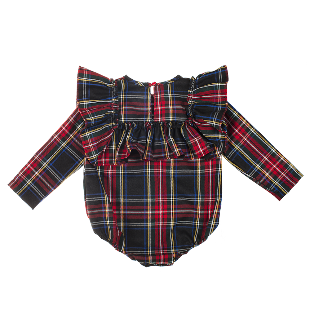 Camicetta-body elegante scozzese da bambina Il Pagliaccetto Emma scozzese da bambina รจ una camicetta elegante con chiusura a body, ha la ruches voluminosa che gira su tutto il body rendendolo vistoso. La camicetta รจ in tessuto scozzese rosso e blu a scacchi, รจ un capo di abbigliamento bambina che puรฒ essere indossato anche da solo come un mini abito per le sue linea a sbuffo. Crea l’outfit di Natale per la tua bambina abbinando il pagliaccetto Emma con la gonna rossa in tulle Sofiย e ย la salopette Mia Dettagli camicetta body da bambina composizione: 45% viscosa 55% altre fibre…