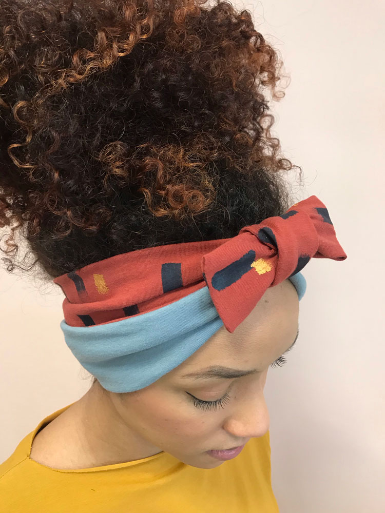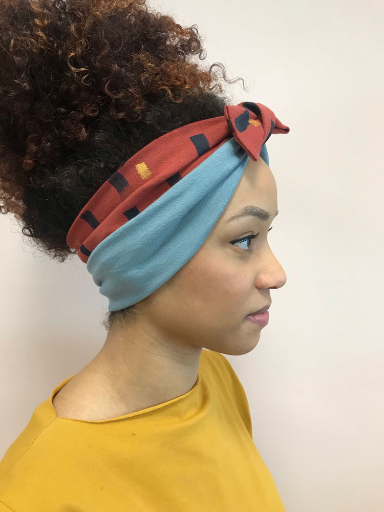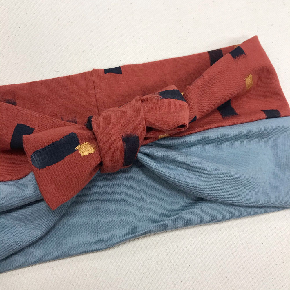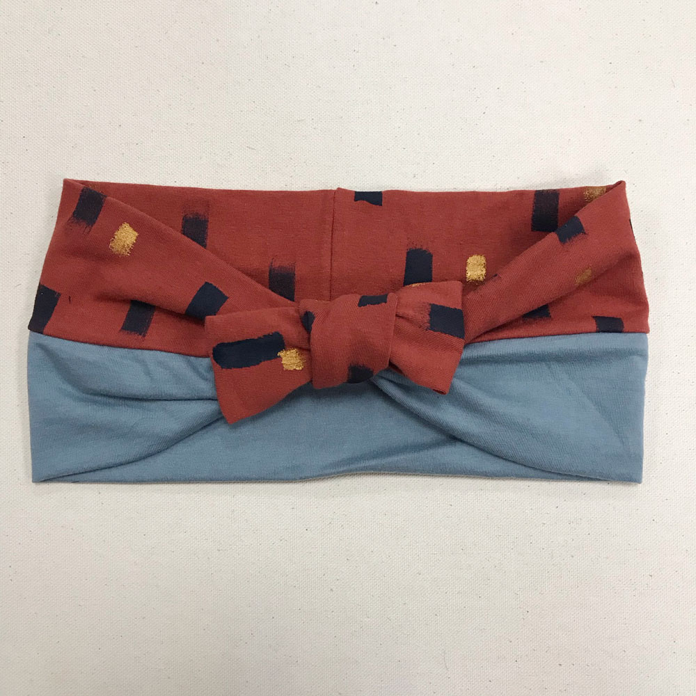 Turbante fascia donna dipinta a mano azzurro e mattone