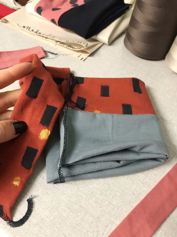 Turbante fascia donna per capelli. Dipinta a mano. Taglia unica. Cotone elasticizzato oeko tex. Usati pezzi di tessuto di scarto, del taglio abiti e maglie ordinate.